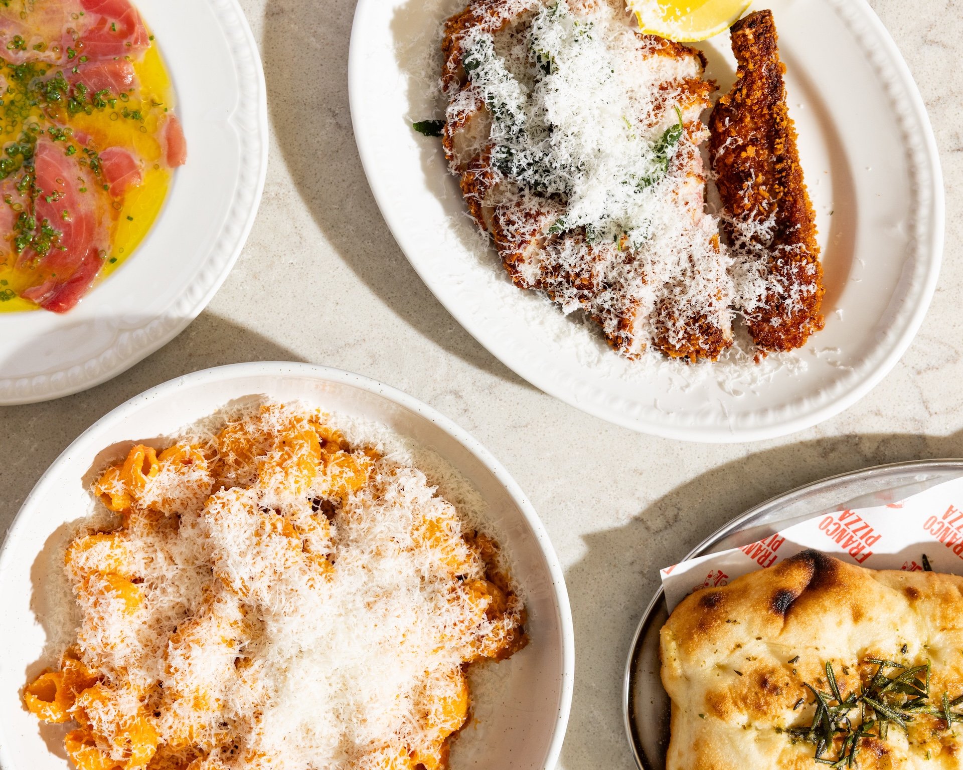 We’re passionate about quality — from the trusted producers we work with to the 72-hour fermented dough we create for our wood-fired pizzas. Our menu is made for sharing, featuring fresh seasonal plates, antipasti, pasta, quality meats, and more.